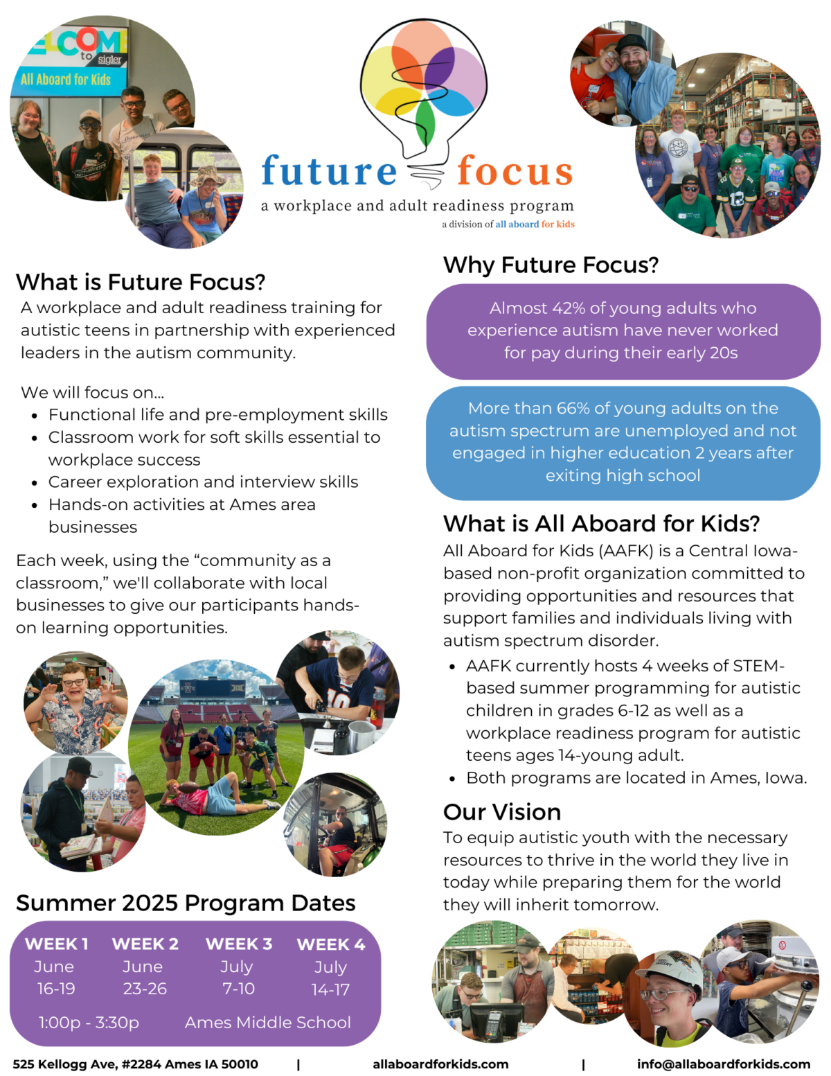 Future Focus is our new afternoon session targeting workplace readiness/adult readiness training for autistic teens. In partnership with other experienced leaders in the Autism community and local businesses, program activities focus on functional life and pre-employment skills for teens who are quickly moving toward adulthood.